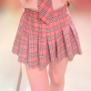 ピンクのチェック柄のミニスカートに、お揃いのネクタイで、紺のハイソックスを履いていて、コスプレ用の安っぽい衣装でしたが、M子によく似合っていました。服装は女子高生なのに、太ももや腰回りの肉付きが、30過ぎの女らしさを醸し、凄くそそられました。